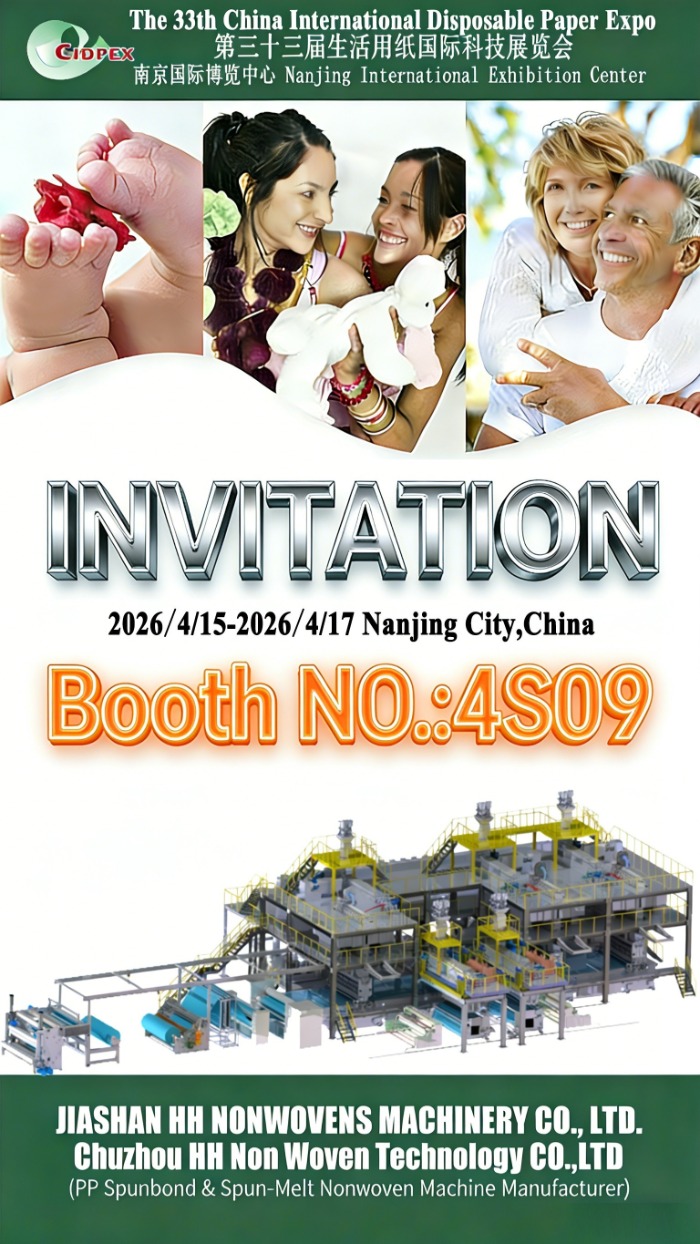 JIASHAN HH Maquinaria para telas no tejidas CO., LTD. y Chuzhou HH Non Woven Technology CO., LTD se enorgullecen de anunciar nuestra participación en el 33a Exposición Internacional de Papel Desechable de China (CIDPEX 2026) , teniendo lugar desde 15 al 17 de abril de 2026 , en el Centro Internacional de Exposiciones de Nanjing, ciudad de Nanjing, China.