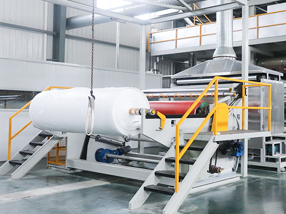 La máquina de tela no tejida spunbond de PP se utiliza para producir tela no tejida spunbond de pp. Con una cortadora en nuestra máquina, la tela se puede cortar en cualquier ancho para adaptarse a diferentes requisitos.